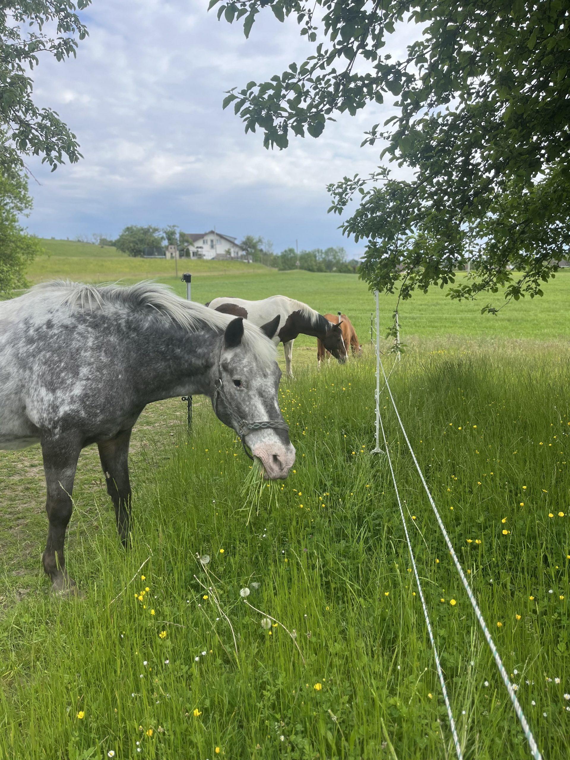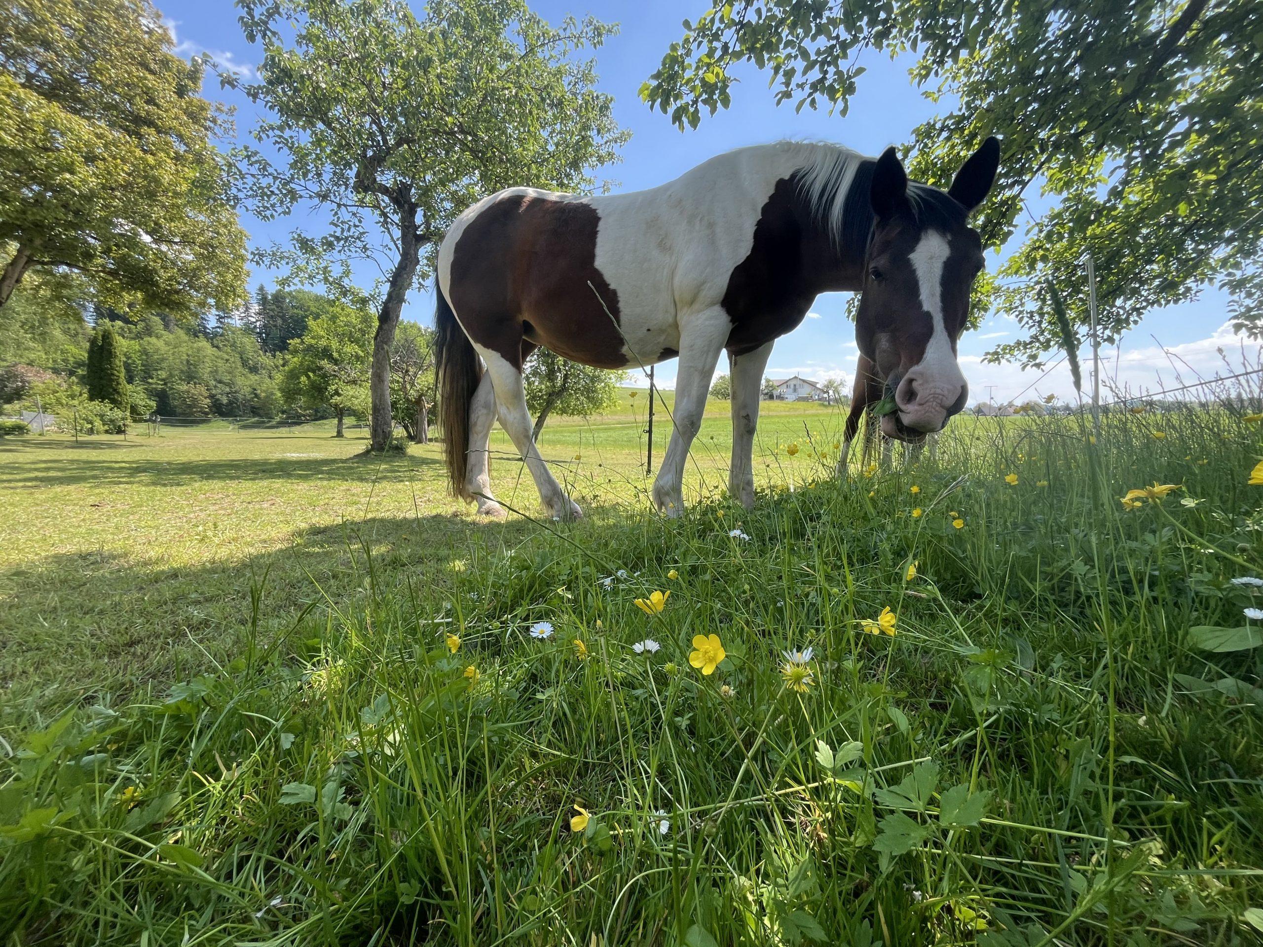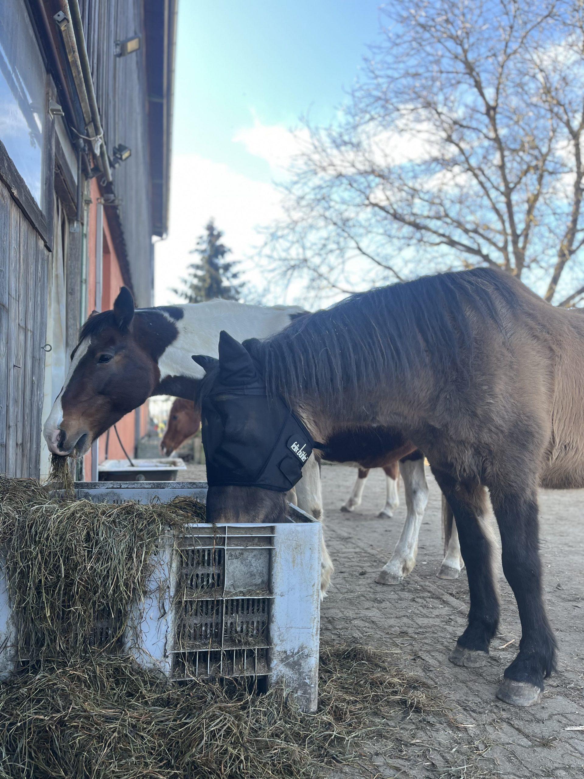 Für unsere Pferde haben wir einen großen Offenstall mit befestigtem Paddock und angrenzender Weide, sowie einem Reitplatz. So können sie zu jeder Tages- und Nachtzeit selbst bestimmen, wo sie sich aufhalten möchten. Unsere Pferdehaltung ist auf Pferde mit Atemwegsproblemen eingestellt. Wir füttern ausschließlich gewaschenes Heu oder Heulage und halten die Ställe staubfrei. In den Sommermonaten bietet unsere große Weide genug Nahrung und fördert so eine gesunde und pferdefreundliche Haltung.