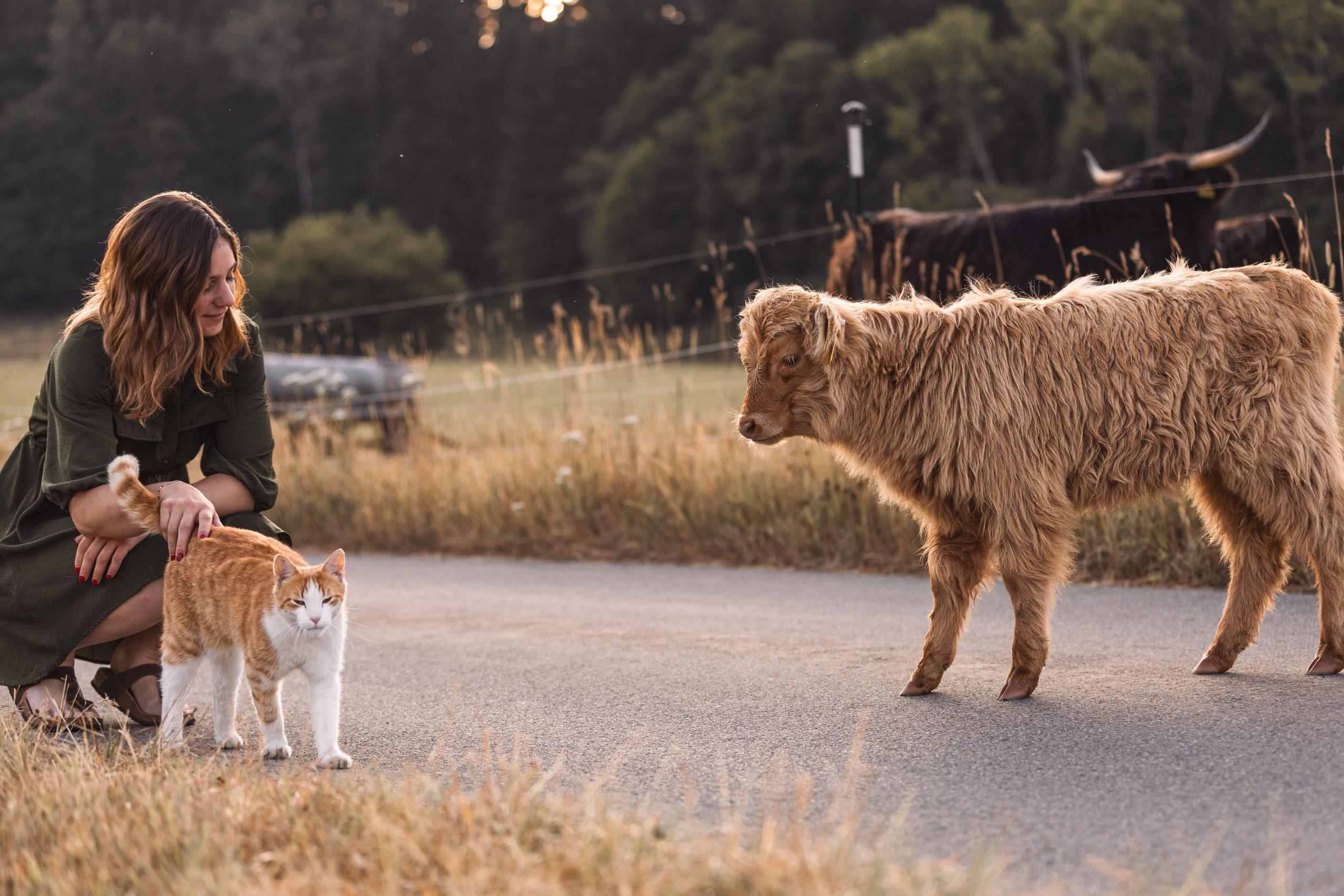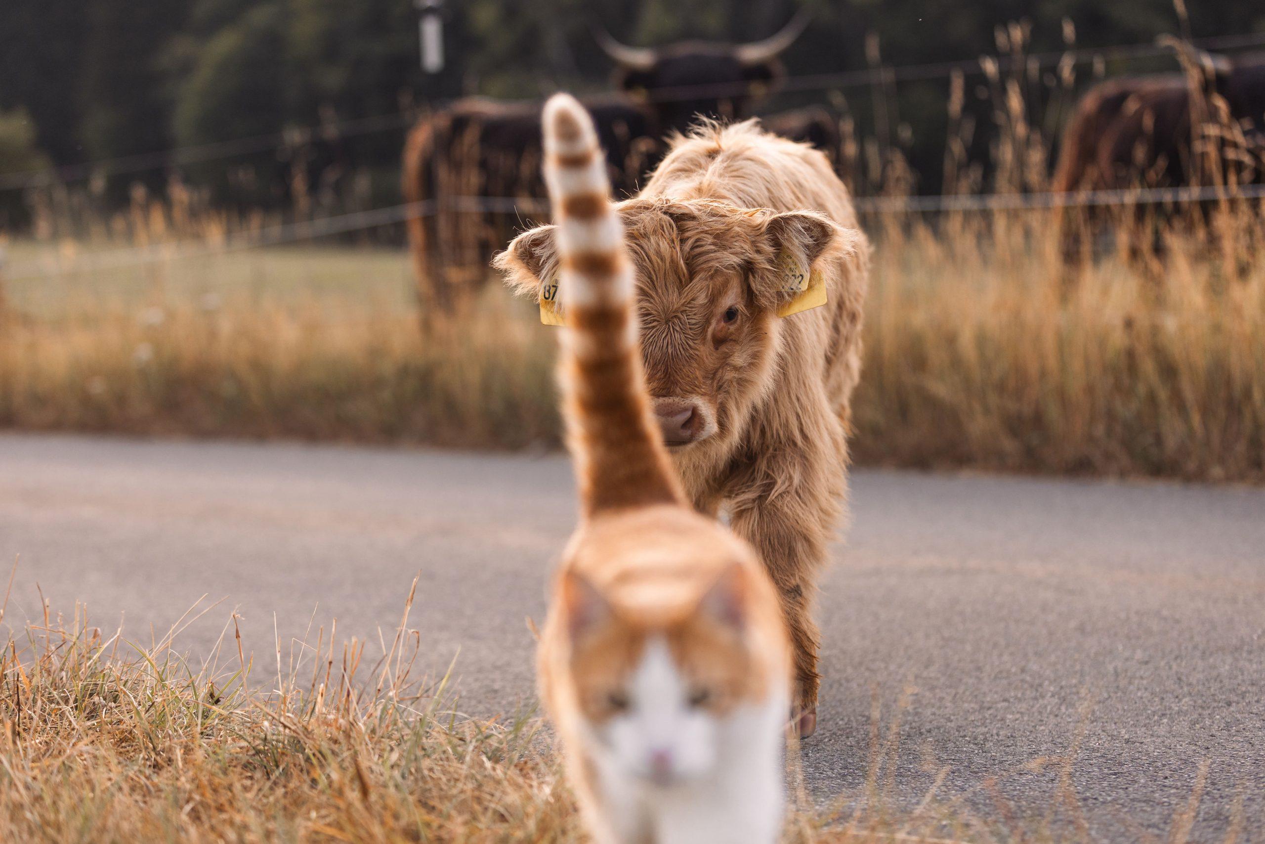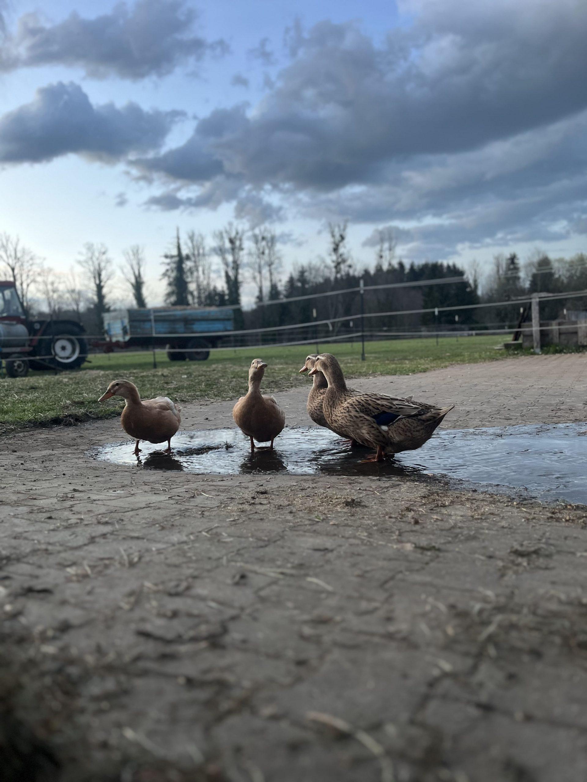 Neben den Rindern, den Pferden und den Zuchtkatzen gibt es unter anderem unsere Hofkatzen Felix und Pauli. Außerdem wuseln noch Schafe, Schildkröten, Hühner und Enten auf unserem Hof umher.