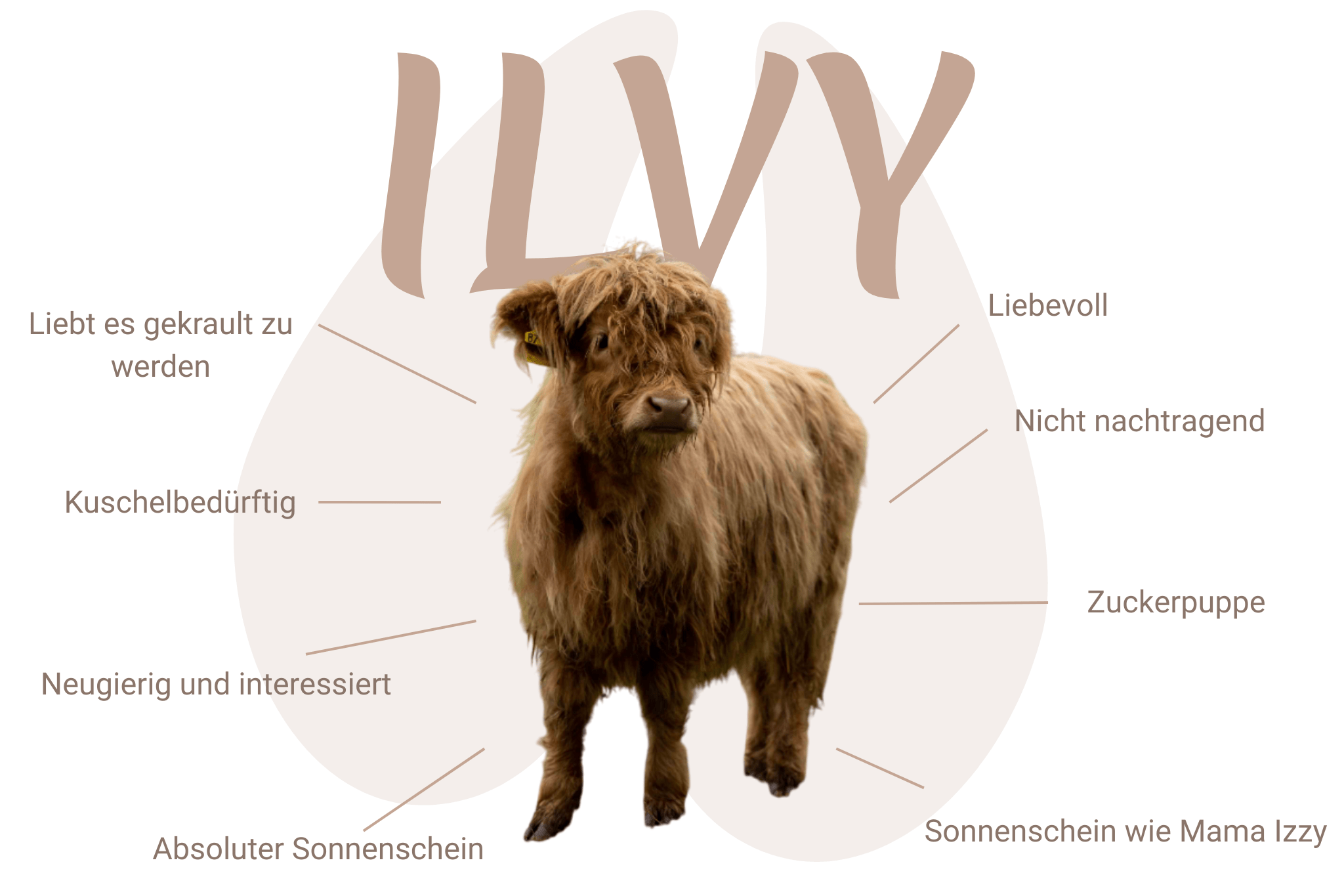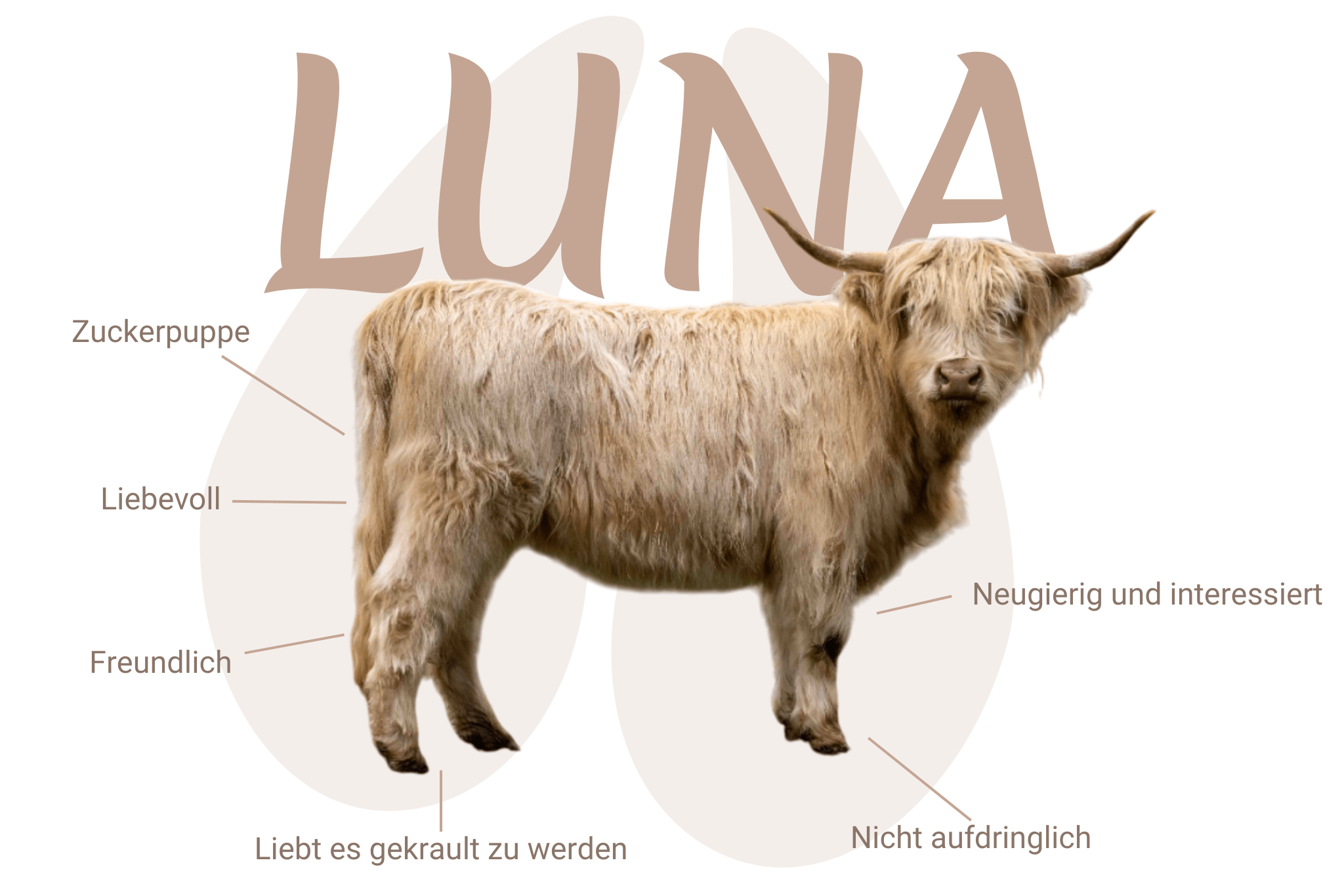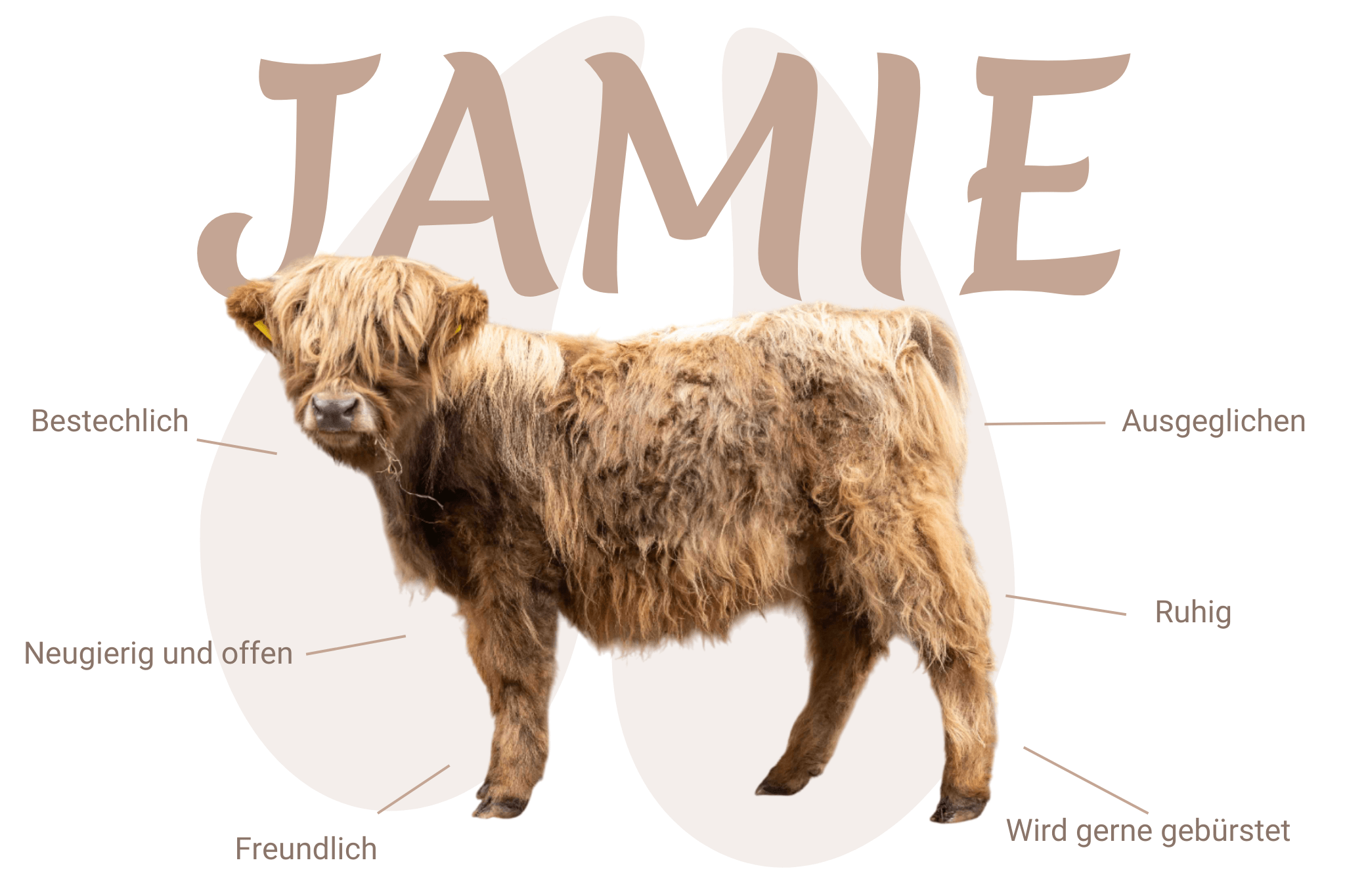 Unsere Highlander werden momentan in zwei Herden gehalten. In der Hauptherde läuft unser Leihbulle Ruadhri mit seinen Damen über rund zwei Hektar Fläche. In der zweiten Herde stehen unsere Teenie-Mädels, also alle Färsen, die aufgrund ihre Alters noch nicht gedeckt werden dürfen. Fürs nächste Jahr ist eine dritte Herde mit einem blutsfremden Bullen geplant. Die Liebe zu unseren Tieren spiegelt sich in ihren zutraulichen Charakteren. Trotzdem hat jedes Herdenmitglied seinen ganz eigenen und besonderen Charakter. Die wichtigsten Eigenschaften unserer treuen Wegbegleiter sehen Sie auf den Bildern stichpunktartig zusammengefasst.